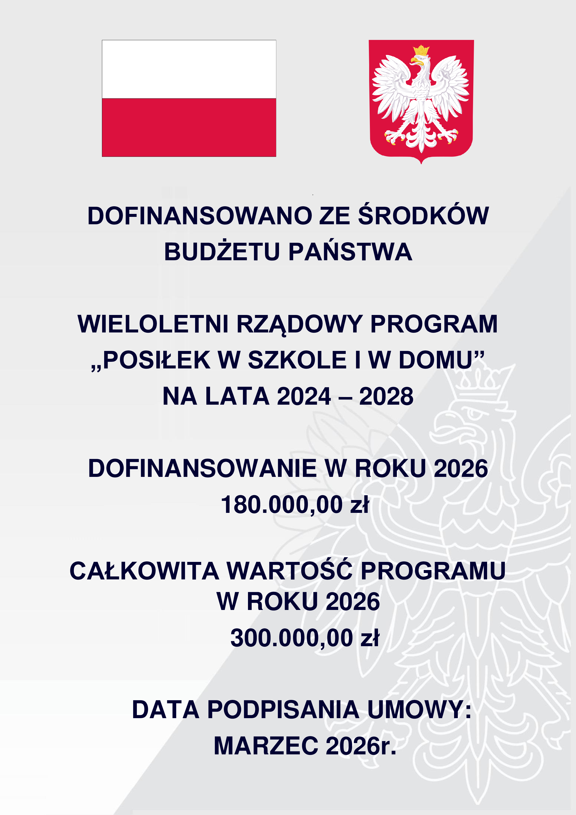 Gmina Ełk od dnia 1 stycznia 2024 r. realizuje program rządowy „Posiłek w szkole i w domu” na lata 2024 – 2028, przyjęty Uchwałą Nr 149 Rady Ministrów z dnia 23 sierpnia 2023 r (M.P. z 2023 r. poz. 881).